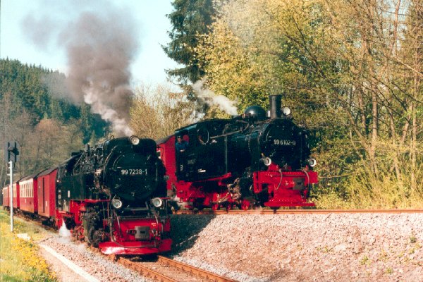 Doppelausfahrt mit "Neubaulok" 99 7238 und "Fiffi" (Lok 99 6102)
