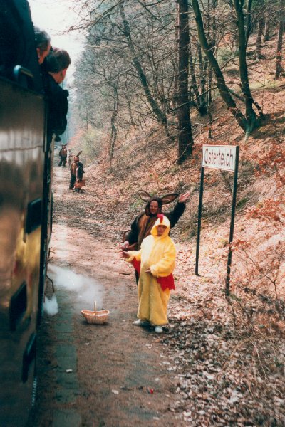 Osterhasen am Haltepunkt Osterteich Foto: Heiko Fricke Vergrößern 80,0 KB |