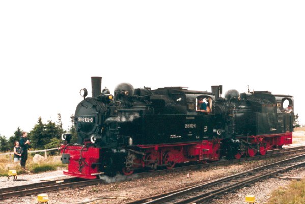 beide Fiffies (Lok 99 6102 und Lok 99 6101) im Bahnhof Brocken Foto: Heiko Fricke Vergrößern 42,5 KB |