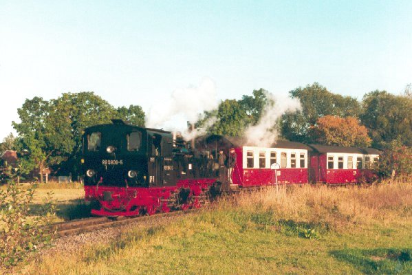Mallet-Lok 99 5906 im Plandienst mit einem Personenzug Foto: Heiko Fricke Vergrößern 58,4 KB |