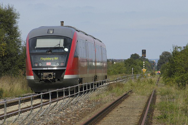 Regionalbahn Thale Hbf Magdeburg vor dem Bf Quedlinburg; vorn Baugleis (13.09.2005)