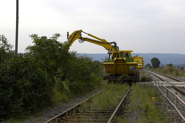 Zweiwegebagger mit Mulde unterwegs zwischen Gernrode und Bad Suderode (08.09.2005)