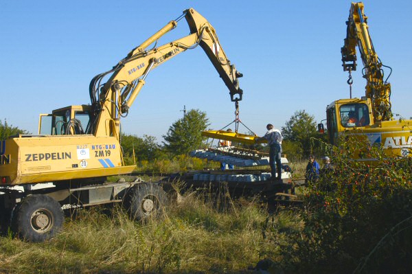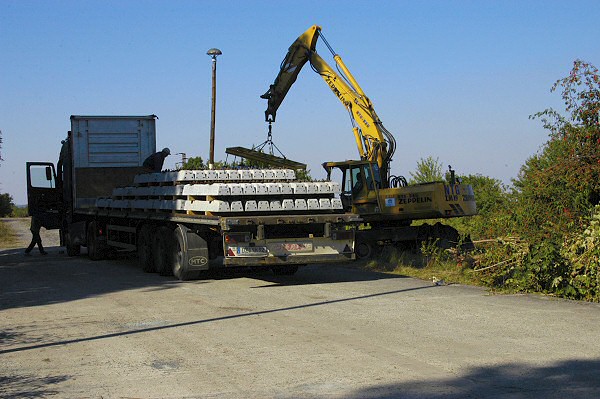 Verladen der ersten Schmalspurschwellen im Bf Bad Suderode (20.09.2005)
