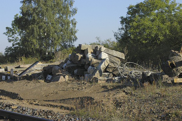 Haufen mit den abgebauten Hektometersteinen im Bf Bad Suderode (20.09.2005)