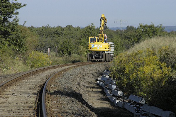 Verladen von Schutt von der Beräumung der Böschungen und Entwässerungsgräben bei km 23,2 (13.09.2005)