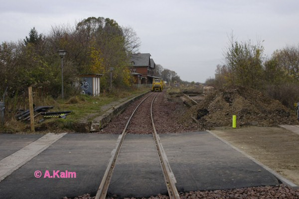 Im November wurden an den Bahnübergängen in Bad Suderode sowie zwischen Bad Suderode und Einfahrt Bahnhof Quedlinburg die Schmalspurgleise eingebaut und die Schwarzdecke hergestellt.
