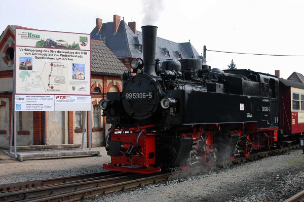 "gedrehte" Lok 99 5906 bei der Veranstaltung zum offiziellen Baustart am 18.04.2005