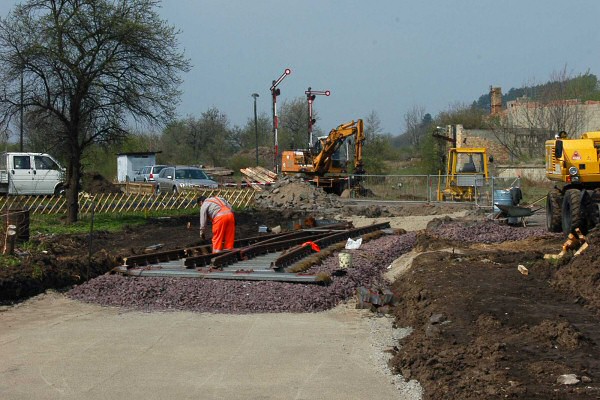Einbringen von Schotter für die neue Weichenstraße