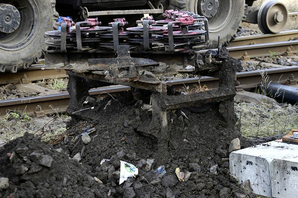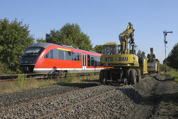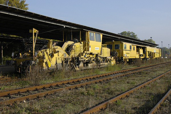 Gleisbaumaschinen auf dem Gleis am Bahnsteig 3