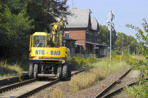 Zweiwegebagger im Gleis 1 des Bf Bad Suderode