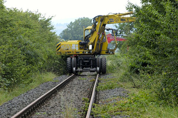 Zum Schaffen der Baufreiheit wurde in der Woche 29.08. – 02.09.2005 die Bahntrasse durch Freischnitt von mittlerweile gewachsener Vegetation befreit.