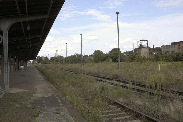Blick vom Bahnsteig über ehemalige Gütergleise