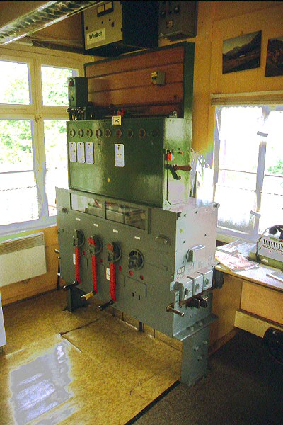 Dienstraum des Wärterstellwerks Qw mit Kurbelwerk und Blockaufsatz