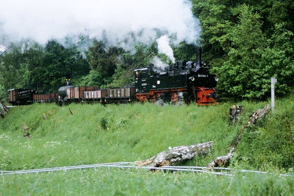 Fotogüterzug mit 99 5906 im Langen Tal vor Harzgerode Foto: Klaus Gottschling Vergrößern 80,9 KB |