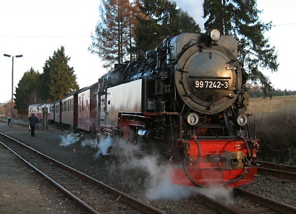 Für den planmäßigen Dampfzugumlauf befindet sich derweil "Neubaulok" 99 7242 in der Einsatzstelle Gernrode.